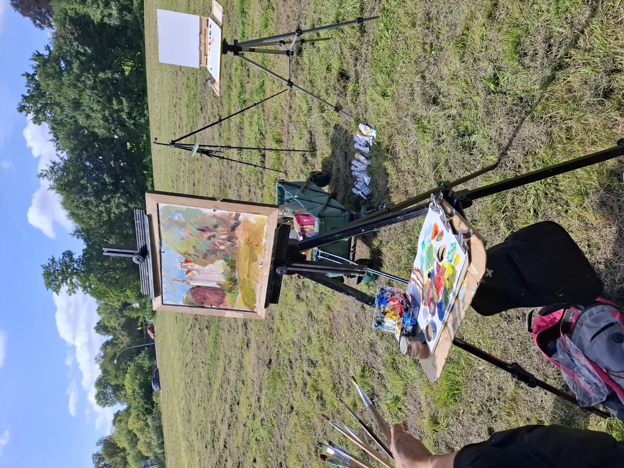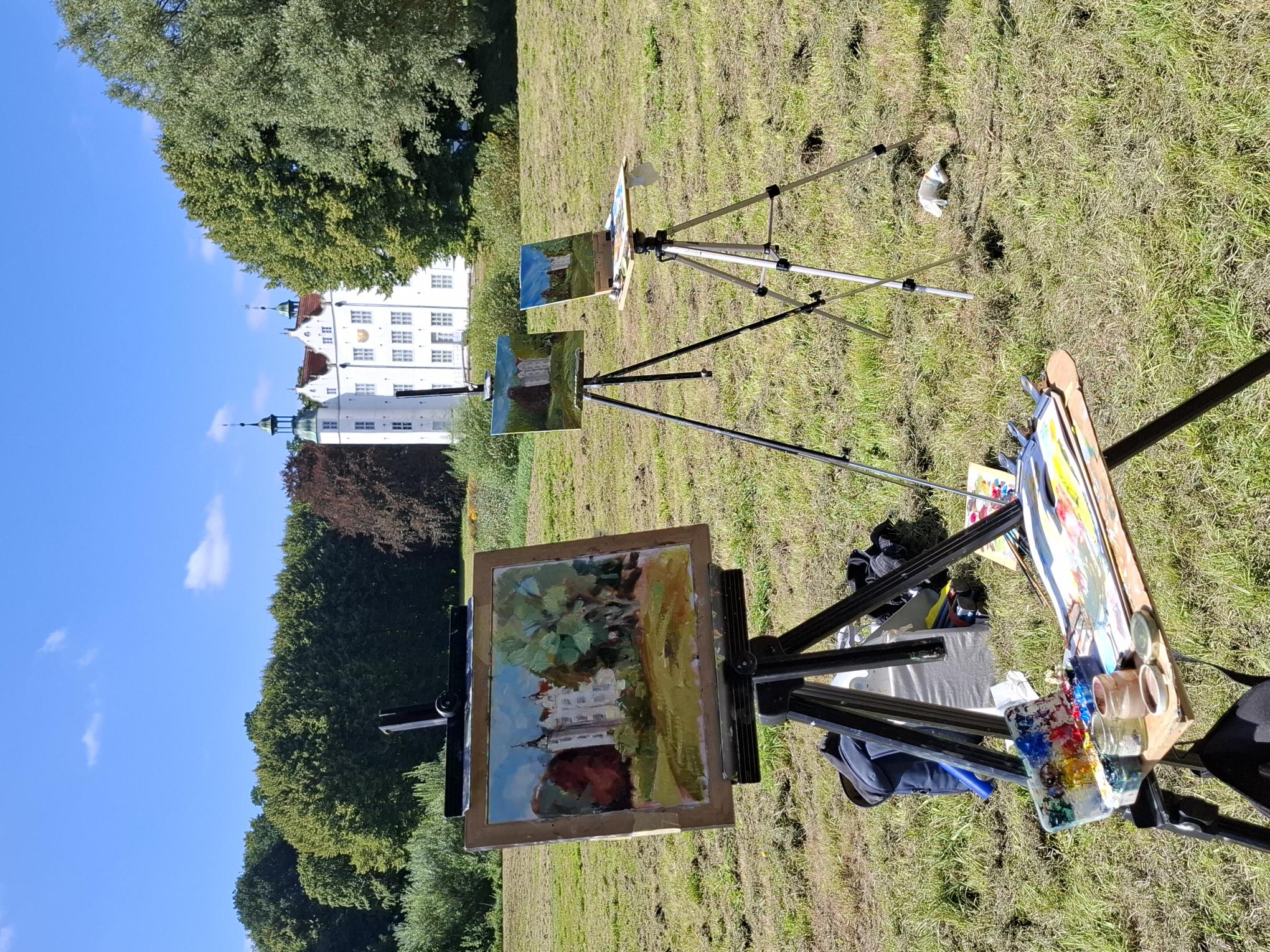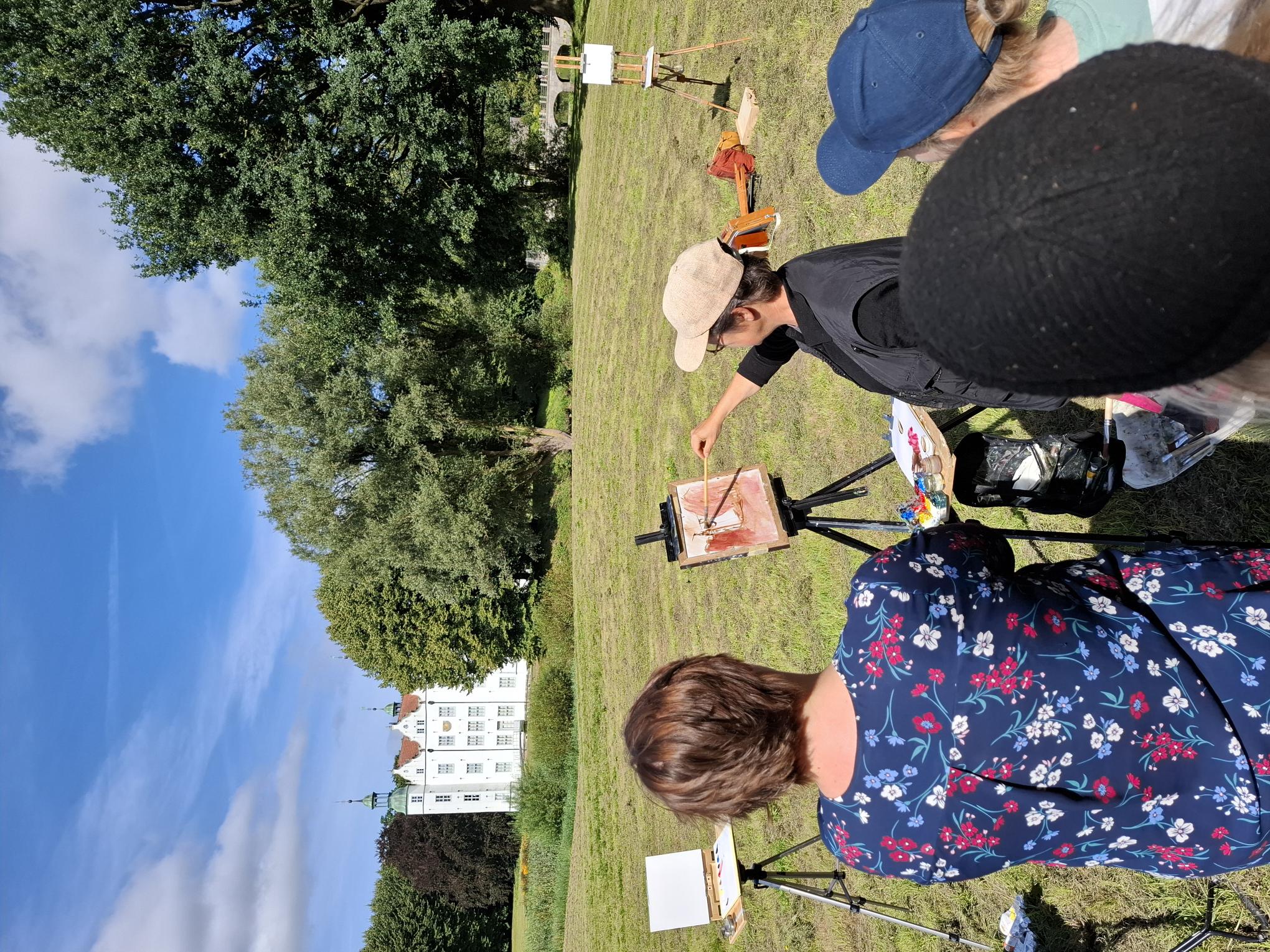 im Schlossensemble in Ahrensburg von 11 bis 14 UhrSeit Erfindung der Ölfarben in Tuben ziehen die Maler und Malerinnen in die Natur um in der alla prima Technik (Bild wird in einer Sitzung fertiggestellt) Studien oder auch größere Gemälde zu schaffen.