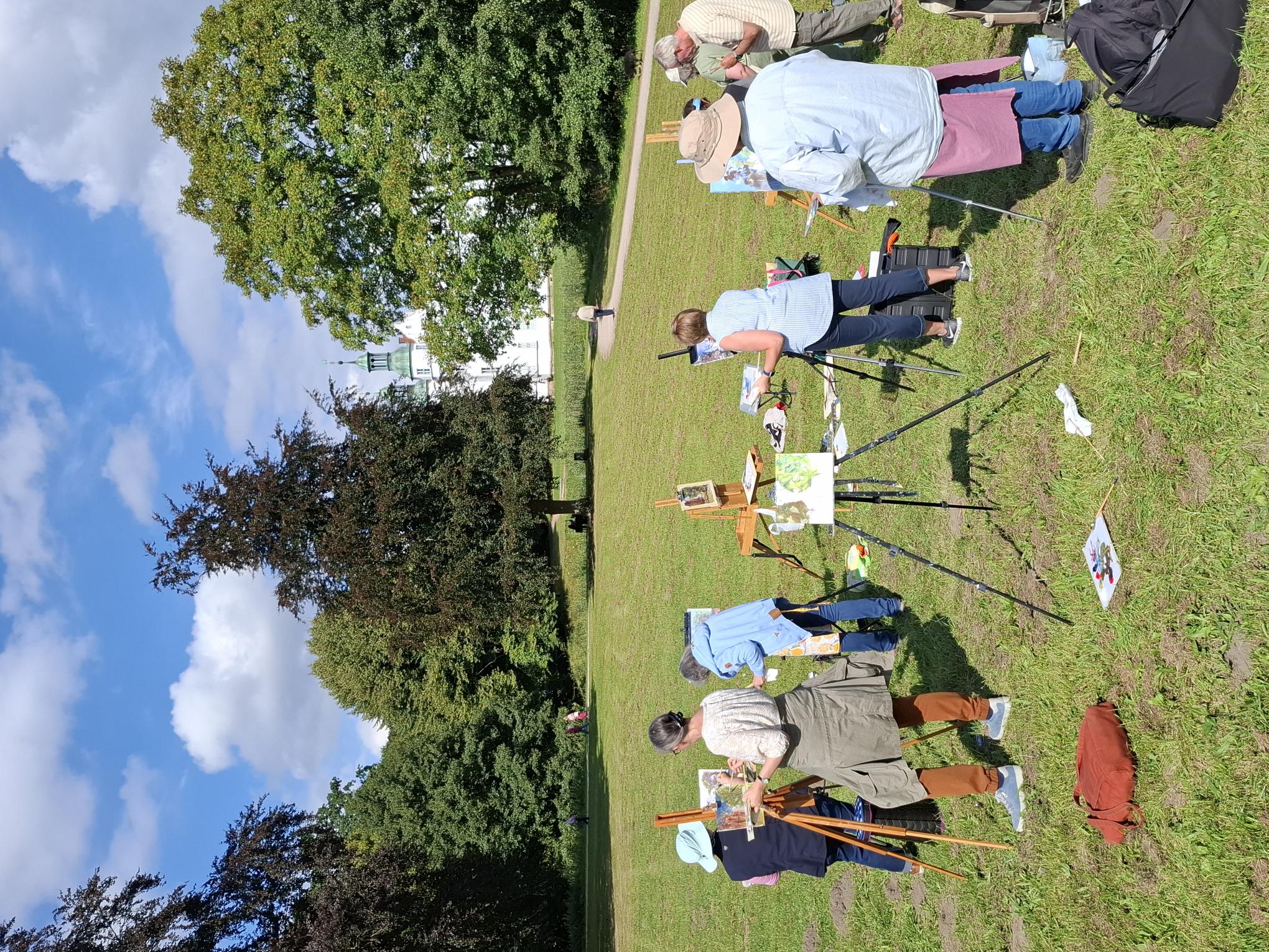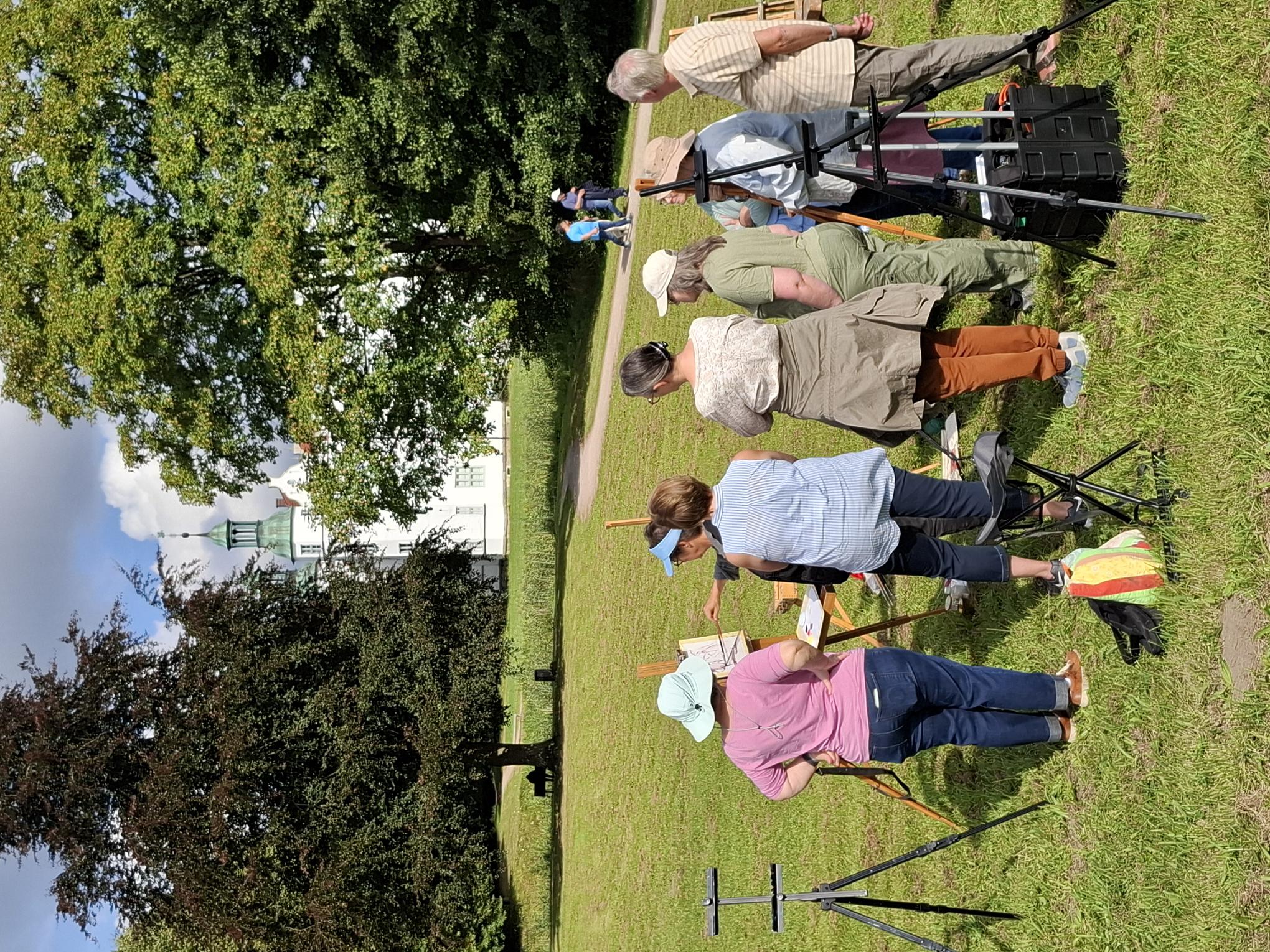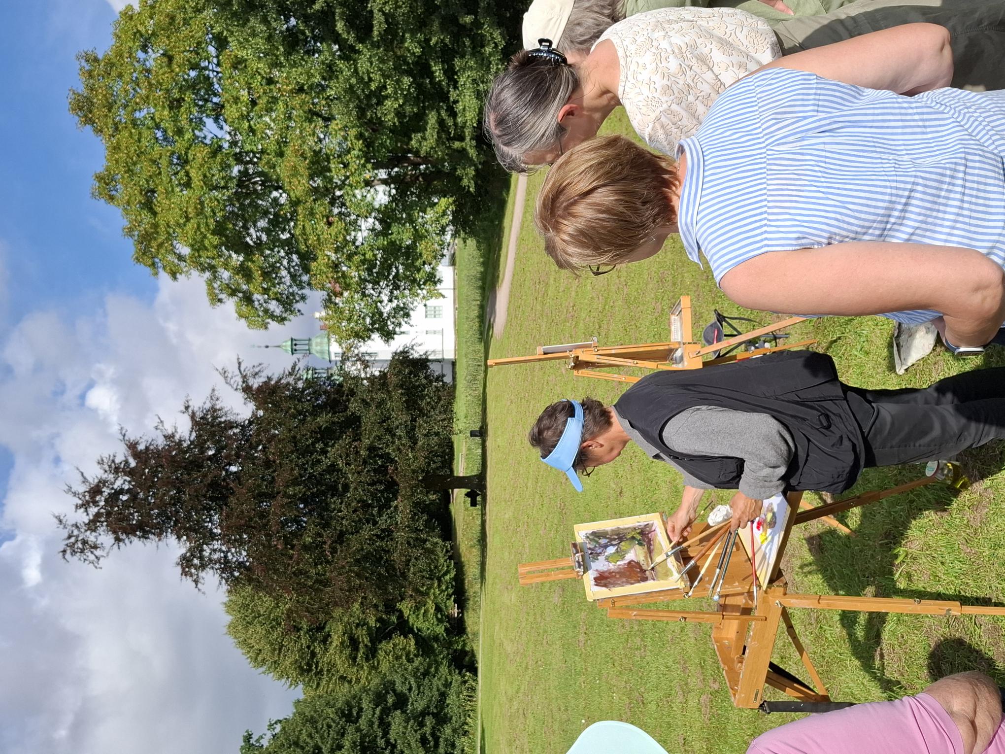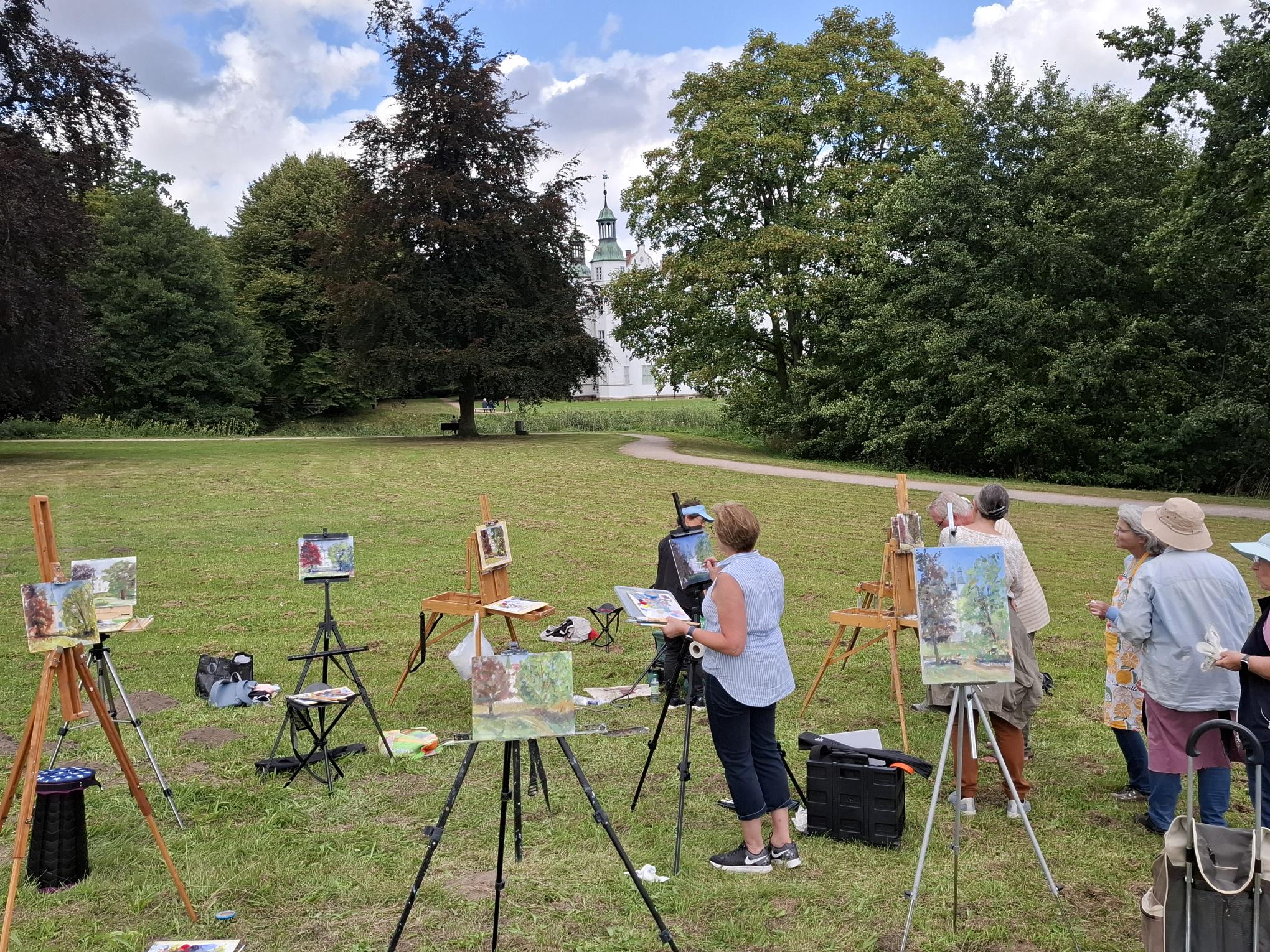 im Schlossensemble in Ahrensburg von 11 bis 14 UhrSeit Erfindung der Ölfarben in Tuben ziehen die Maler und Malerinnen in die Natur um in der alla prima Technik (Bild wird in einer Sitzung fertiggestellt) Studien oder auch größere Gemälde zu schaffen.