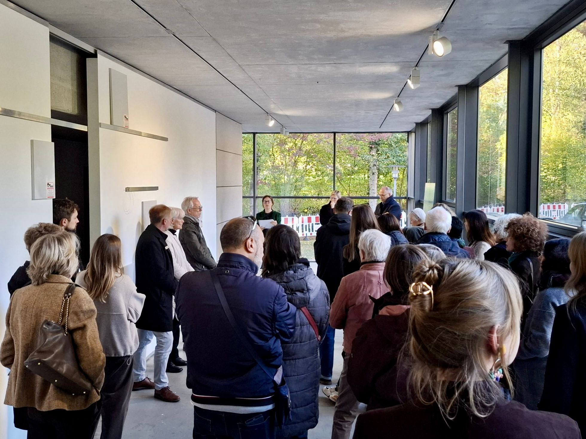 Im Anschluss an die Begrüßung und Einführung zur Ausstellung in der Wassermühle spricht Dr. Katharina Schlüter, Geschäftsführerin der Sparkassen-Kulturstiftung Stormarn, zur Präsentation von Jenny Feldmann.